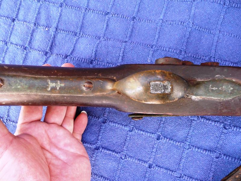 Es un arma centenaria de avancarga y en el guardamanos tiene este sello, no he encontrado referencias a él, en una ocasión me dijeron que creian que era el sello de mosquetero o arcabucero real.