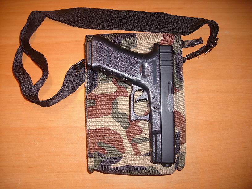 Vendo bolso de camuflaje con capacidad para transportar arma corta. La Glock-17 cabe a la perfeccion (entra y sale sin ninguna dificultad).