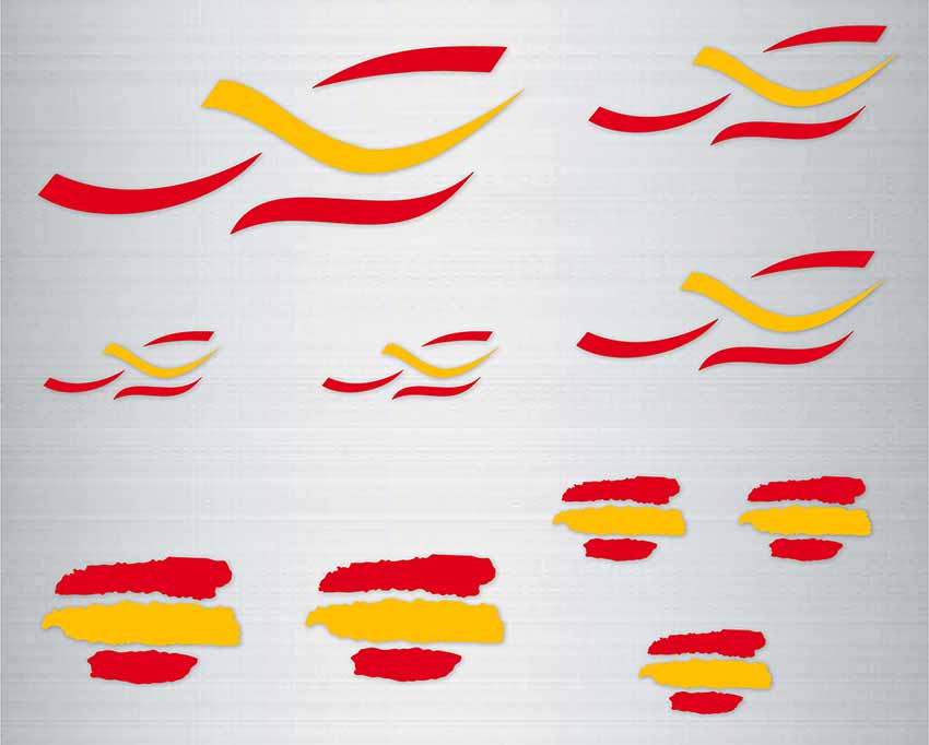 Vendo kits de adhesivos en vinilo de corte con los colores de la bandera de España. Son los que veis en la foto.