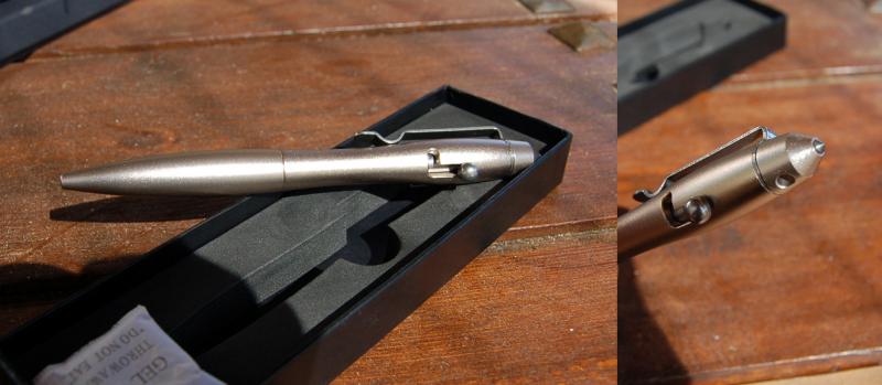Bolígrafo de aluminio desmontable con punta rompevidrios de aleación de Tungsteno. Mecanismo de apertura y cierre por cerrojo con muelle. Se entrega con caja. 12 euros.
