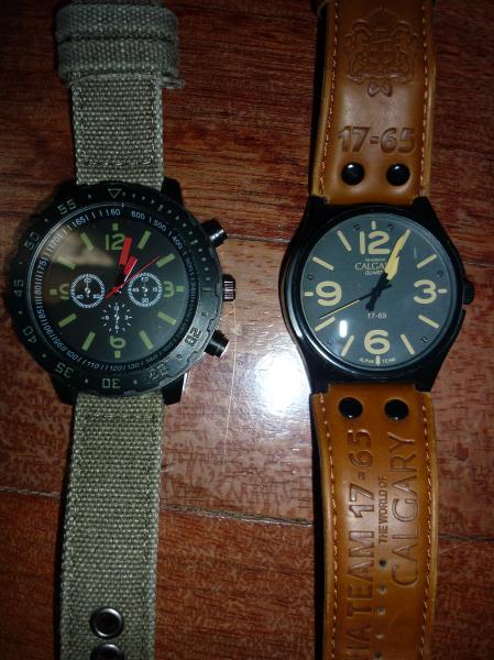 El primero es un Calgary "Alpha Team" de cuarzo, con movimiento Seiko PC21, y correa en polipiel marron, incluyo pila.