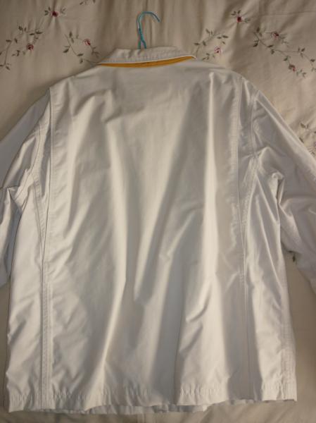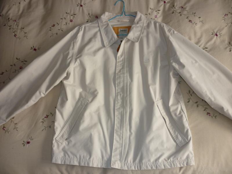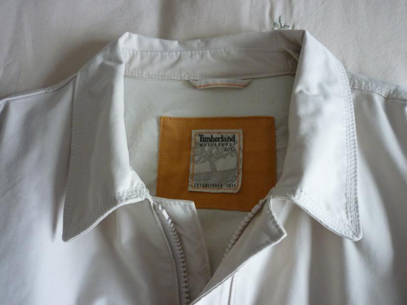 Cazadora Timberland waterproof (impermeable), color hueso y talla L , timberland talla grande, es una XL europea.