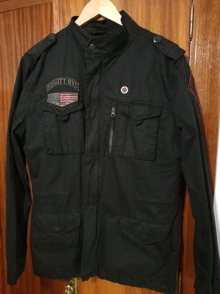 CHAQUETA DE LA MARCA SCHOTT EN ALGODÓN ,TIPO M-65 EN PERFECTO ESTADO.COLOR NEGRO Y TALLA L AJUSTADA