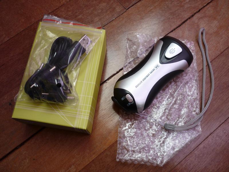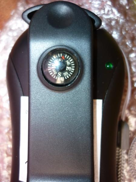 1 linterna de mano de 5 leds, funciona con carga manual o por usb, tiene sirena y brujula.