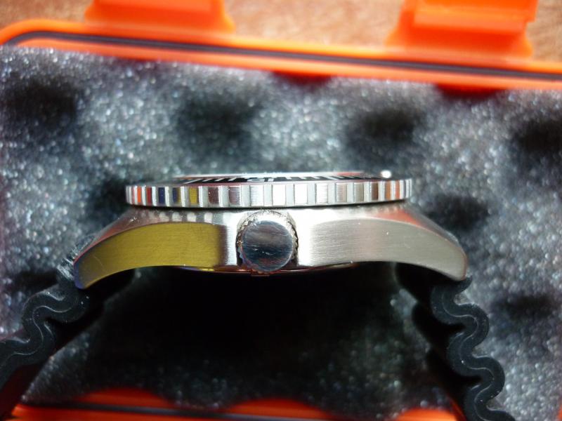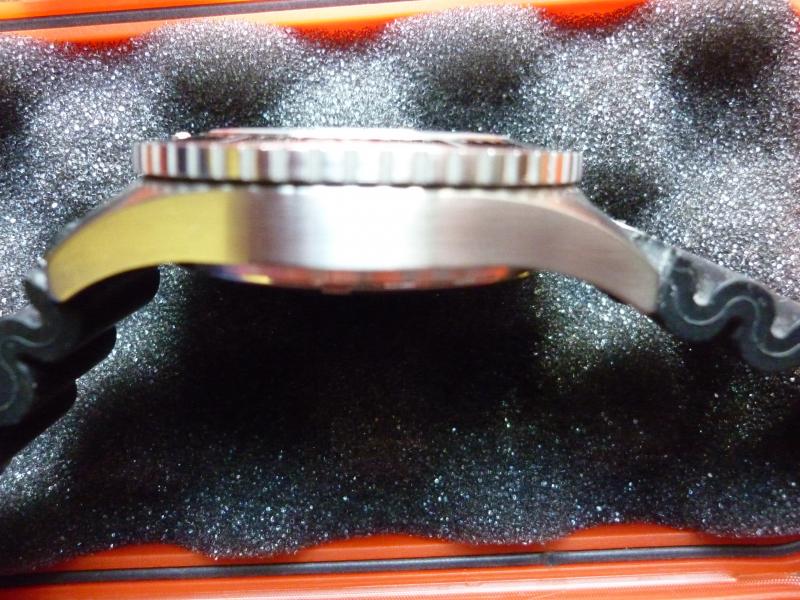 Envio el reloj en caja estanca y acolchada tipo Peli, y con tres correas, un caucho cortado a medida (22mm) y dos natos, una roja y otra negra con franja roja.