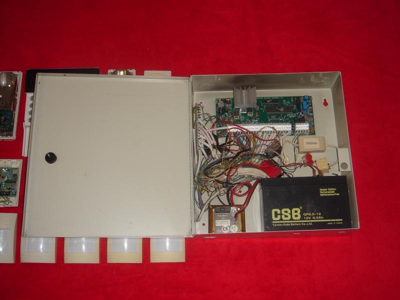 VENDIDO.............CONJUNTO de alarma completa: Central autónoma de conexión telefónica, teclado de alarma,8 sensores volumétricos e infrarrojos y pulsador de alarma (Made in Canadá) Todo el conjunto en excelente estado de conservación.