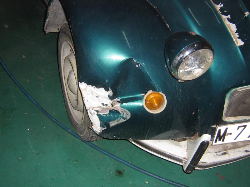 el coche tiene, como veréis un golpe en el lado delantero derecho, debido a esto sólo le entra la tercera (no lo he visto directamente, puede que no sea nada o puede que si) y algo de trabajo, está dado de baja temporal desde el 2011.