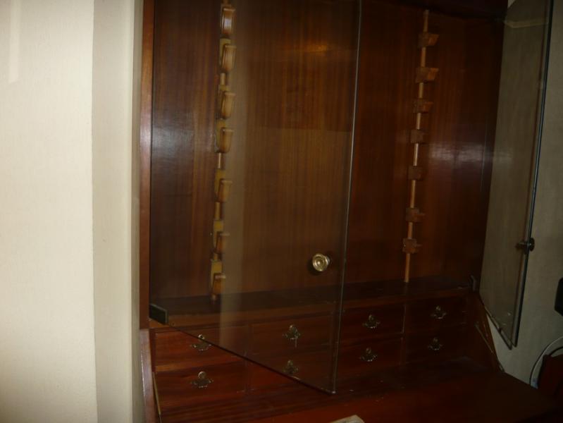 Armero clasico para 7 u 8 rifles en horizontal, o para casi el doble en posición vertical. Con 8 grandes cajoneras, más otras tantisimas en el interior, todas con llave. Al igual que las cristaleras etc. Majestuoso. Y si además eres un poco manitas puedes colocarle en lo alto unos ojos de buey para iluminarlo o como expositor, quedaría fantastico.