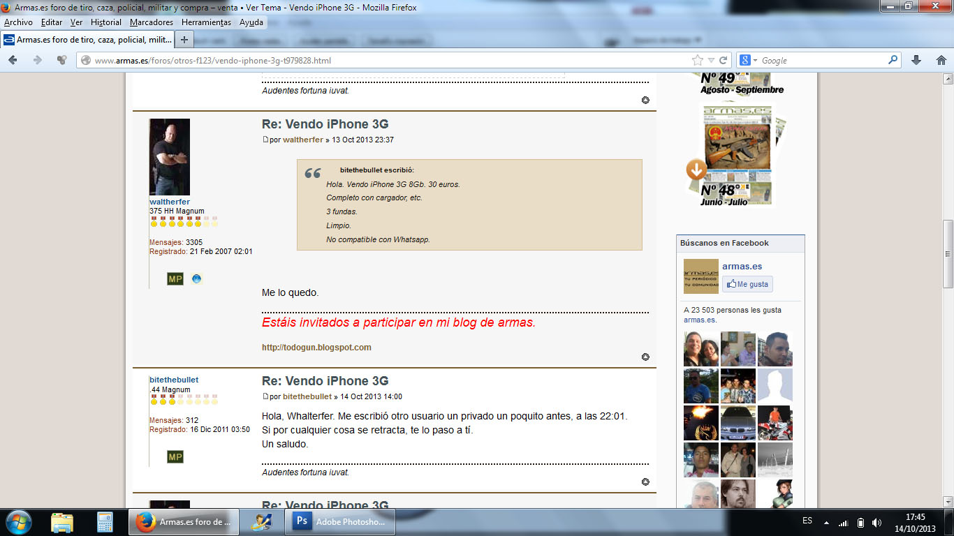 bitethebullet escribió:Hola, Whalterfer. Me escribió otro usuario un privado un poquito antes, a las 22:01.