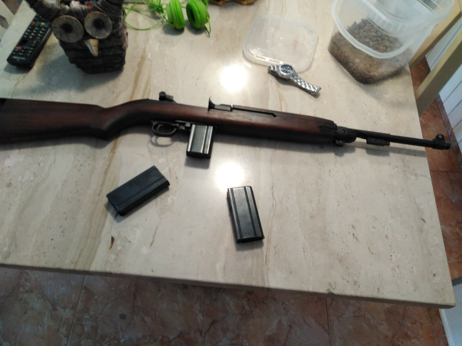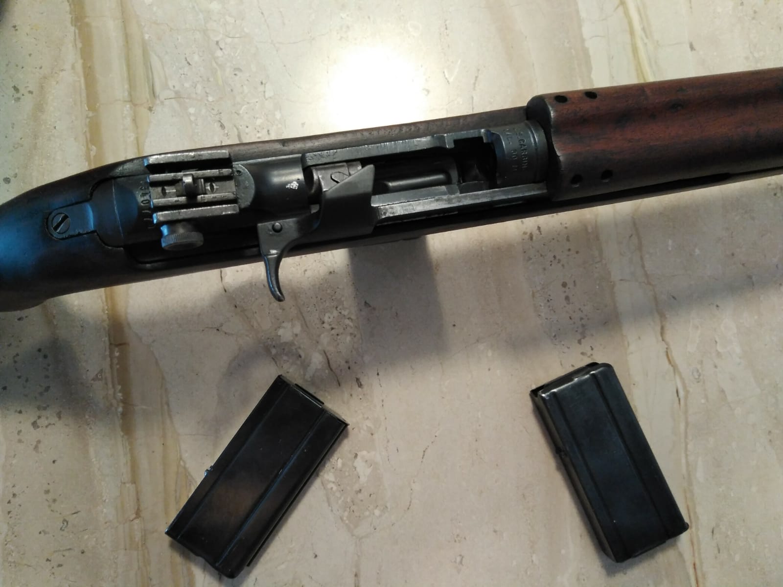 Un compañero del club de tiro me ha pedido que cuelgue este anuncio por él. Se trata de una carabina M1 original de la segunda guerra mundial, en configuración típica de final de guerra (alza regulable, seguro rotativo, enganche para bayoneta). El arma se acompaña con 2 cargadores, y está en la provincia de Tarragona.