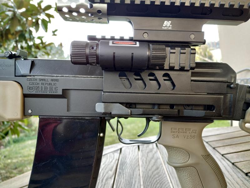 Rifle semi VZ58 cal. 222 Rem semiautomático, importado por Nidec, lleba montado una kit FAB Defence, apagallamas roscado en la punta, cargador original, visor NCstar con retícula iluminada, bípode plegable, montura y accesorios originales, dais del cal 222 Rem, 150 puntas y maletín de transporte.