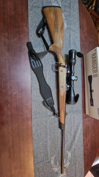 De un amigo, Sako 85 Bavarian en calibre 270wsm, pelo, anillas Sako de 30 y Steiner Ranger X8 de 2-16x50 punto iluminado y torreta.