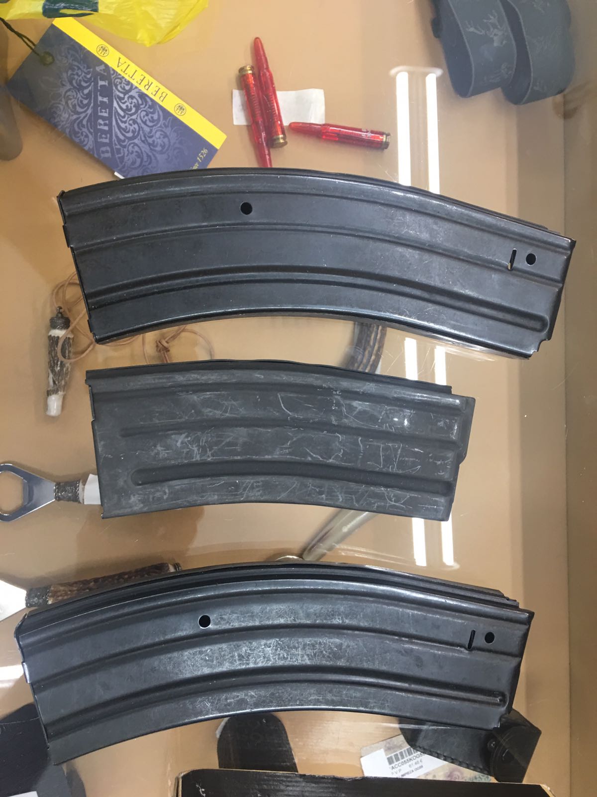 el arma tiene varios cargadores de coleccion y un visor y monturas , como se ve en las fotos ,con un cargador de 5 tiros el resto de cargadores son para coleccion