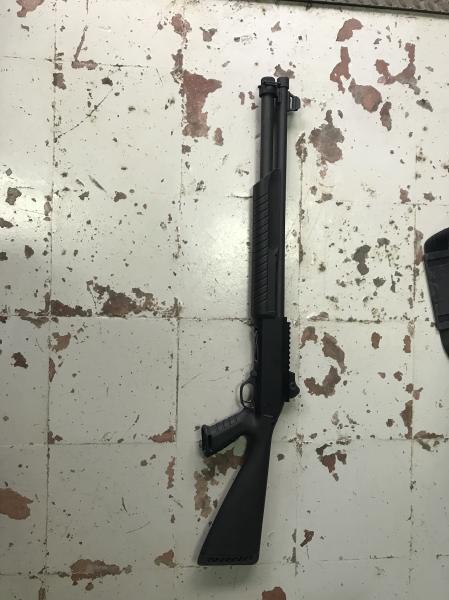 Magnifica escopeta de corredera de tipo policial, de 51 cm de cañón, de material sintético con opción de instalar diferentes choques aunque de serie viene con el tapa roscas, lo que la convierte en cilíndrica, con sistema de ayuda de carga mediante un muelle que ayuda a la recuèración de la corredera.