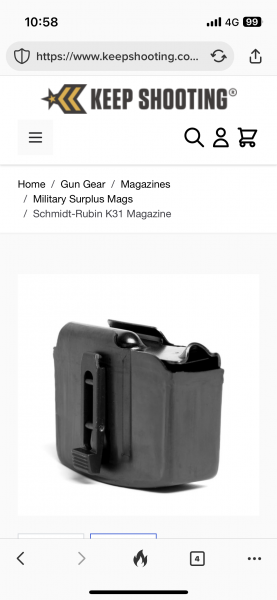 Estoy buscando un cargador para un Schmidt Rubin K-31. Si alguien tiene alguno o sabe dónde puedo conseguirlo, le quedaré muy agradecido.