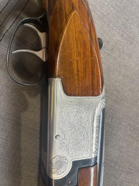 Vendo escopeta superpuesta Laurona cal. 12, en el lateral del cañón, debajo de la caña indica ** y **** y 71 cm., expulsores, cromo negro.