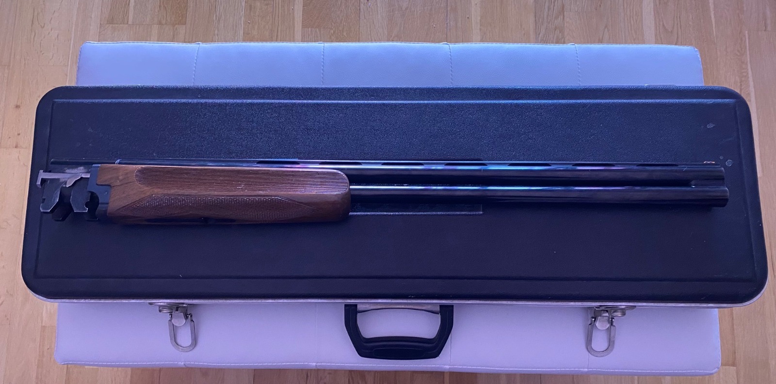 Se vende escopeta de tiro al plato Laurona Gold Sporting, calibre 12, medida del cañón 71 cm con 1 gatillo y expulsará, selector de tiro, polichoques + llave y maletín de transporte, 600€ la escopeta se encuentra en Zaragoza + fotos por privado