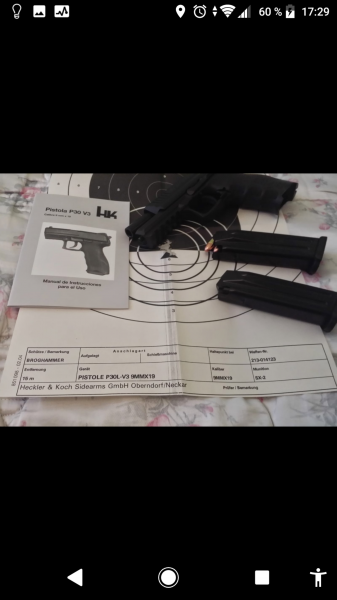 Hola vendo pistola semiautomatica doble accion, y guiada F, H&K P30L, cal. 9mm, en magnifico estado con no mas de 150 tiros, con su funda tactica de material KYDEX, realizado por el artesano PACO HOLSTER. 420 EUROS.