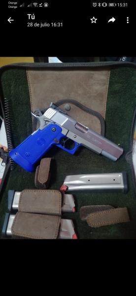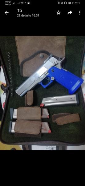Buenas vendo mi pistola sps DCcustom calibre 40, por no usar,ya que tengo otra,se vende con 3 cargadores y meletin de piel original,