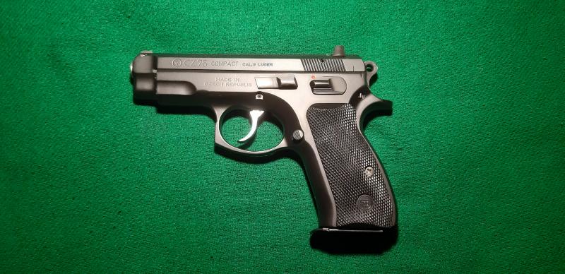 Vendo pistola CZ 75 COMPACT de 9mm guiada en F por 400 €. Perfecto estado como se ve en la foto.