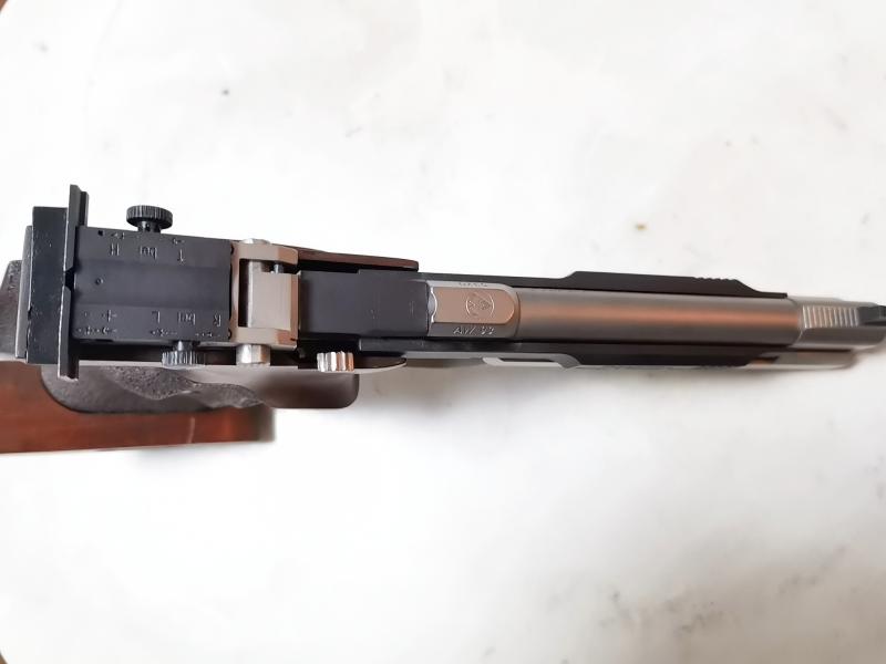 Vendo la pistola Marca Feinwerkbau AW93 cal.22LR, bueno estado, con cacha M, dos cargadores, maletin original.