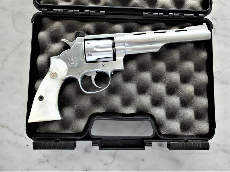 Como he explicado en el anuncio de venta de la pistola Walther SSP, también quiero vender un revolver LLAMA MARTIAL de calibre 32. algo raro para un revolver LLAMA que suelen ser de calibre 38. Está cromado y con cachas de nacarina, pero también adjuntaré una cacha de madera originales de la casa y unas anatómicas, además también adjuntaré una funda de cuero para el cinturón.