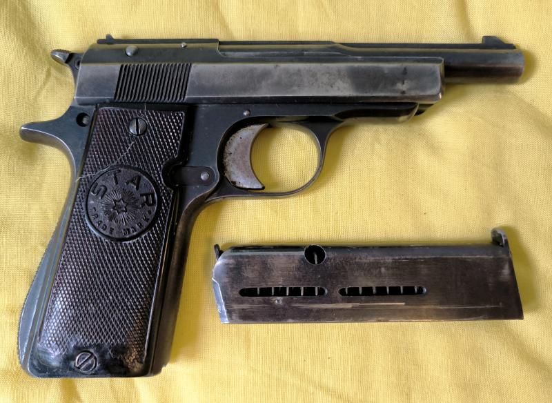 Vendo pistola Star IN de 1932 calibre 380 Auto (9 corto), en perfecto estado de uso, con el desgaste del pavon logico del tiempo. Guiada en F. Esta en Sevilla. 250 Eur. Incluido portes en peninsula.