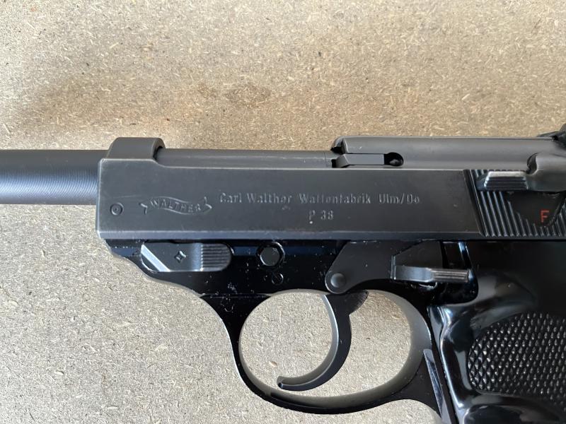 Se vende Walther P38 en perfecto estado de conservación y funcionamiento. Sin golpes, rayones o falta de pavón, las cachas no están rajadas, marcajes visibles. Se incluye funda de cuero y 3 cargadores originales.