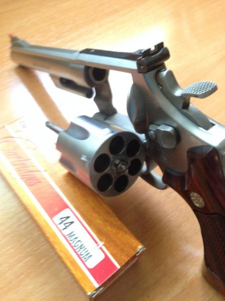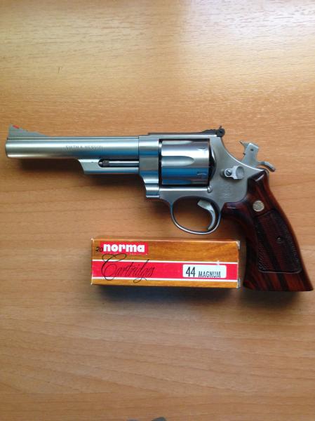 Revolver smith&wesson mod. 629 en acero inox. calibre 44 magnum. 6 pulgadas de cañón. arma en excelente estado como nueva, proviene de colección privada. prácticamente no ha disparado. no se aceptan cambios. Lo vendo por 995€. El modelo nuevo precio armeria es de 1.375€