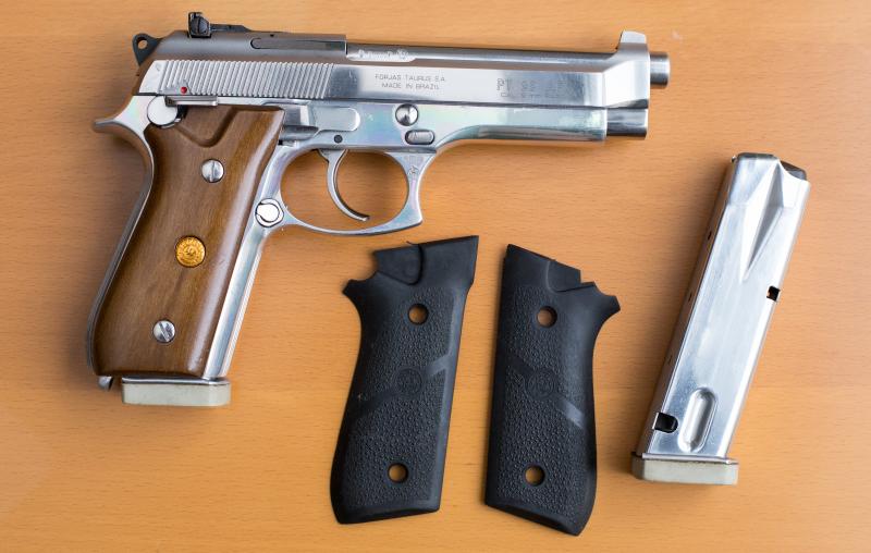 Vendo pistola Taurus PT99 de 9mm Para. Corredera acero inox. Cachas originales + Hogue neopreno.