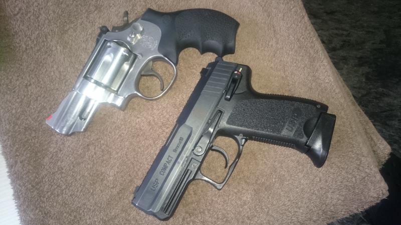 Buenas. Vendo Smith wesson modelo 66-4, K frame (tamaño mediano), 2.5 pulgadas, calibre 357 magnum por lo que admite 38 spl o 38 spl +P. Guiable en A o B, el arma se encuentra en Guipúzcoa. Pido 450 con el material que se ve en un de las fotos más las cachas originales. La foto que se ve junto a la Hk usp compact, es para que se hagan una idea del tamaño. Gracias.