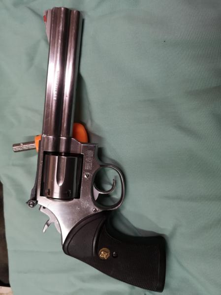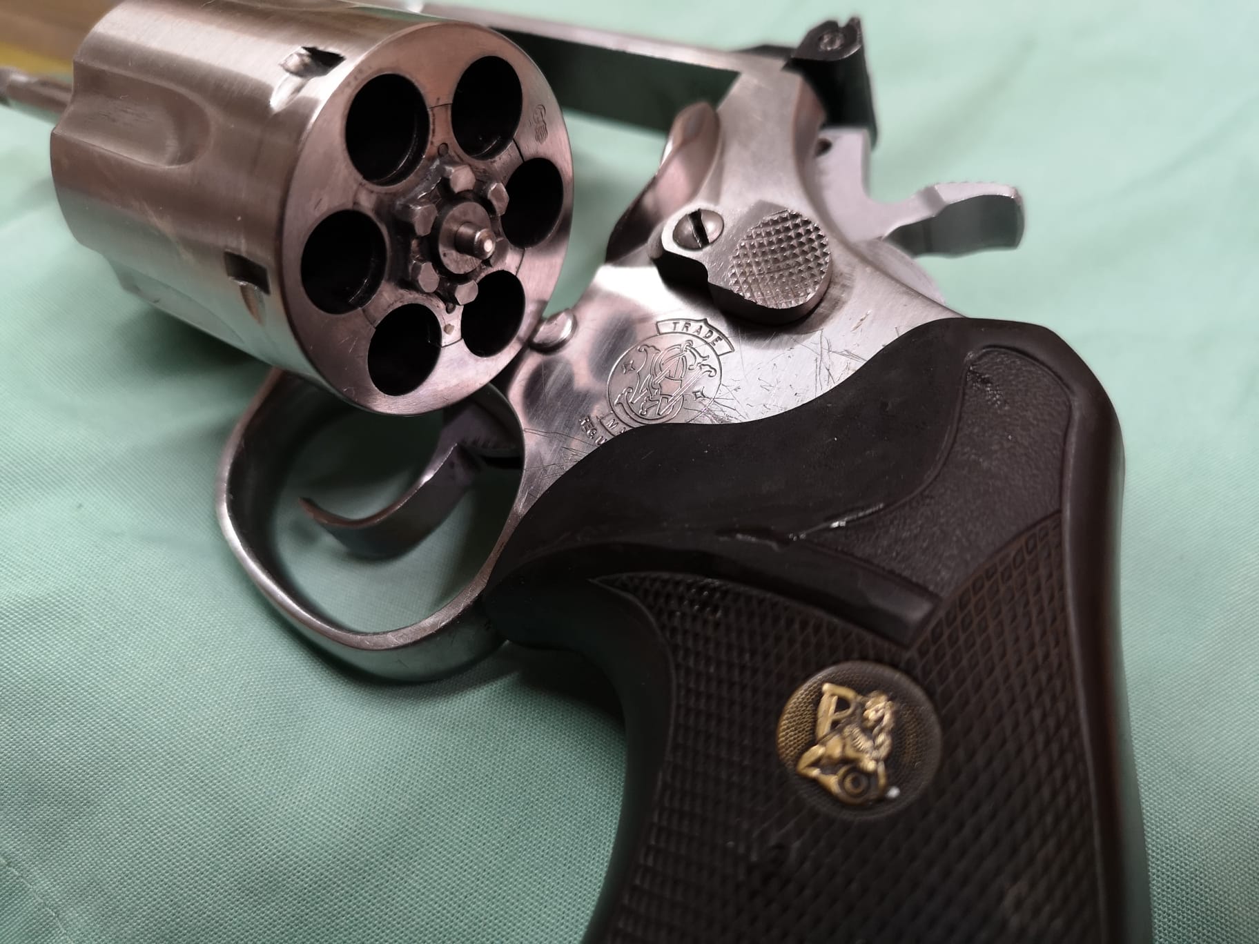 Soy el segundo propietario, guiado desde noviembre 2017, el anterior propietario lo tenía desde, al menos, 10 años atrás. Cacha de goma en buen estado, la de madera no. Es un 38 spec. y 357. Salvo las cachas, el estado del revolver es muy bueno. En simple está a 1kg. Regalo kit nuevo de muelles, por si quieres preparar el disparador a tu manera. Tengo algunas cosas más para usarlo, que regalo ( funda y cinturón de cuero, cilindros de carga rápida, díes de 38/357 titanium nitride de Hornady, vainas Hornady nuevas de 357, puntas y algunas cosas más. Envío fotos a wasap. Está en Orense. El precio es de 450€, incluidos gastos de envío del revolver.