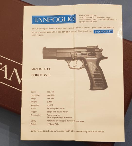A la venta pistola Tanfoglio modelo Force 22 L, el arma pertenece a mi mujer que se apuntó a lo del tiro conmigo pero apenas la usa, solo las tiradas justas para mantener la licencia y la mayoría de las veces lo hace con otra arma de más precisión, por eso lo de la venta. El arma tiene muy muy poco uso está prácticamente nueva, no creo que haya disparado ni 500 cartuchos. Me podéis llamar para cualquier consulta, Sergio 607 83 11 60 precio EUR 350.-