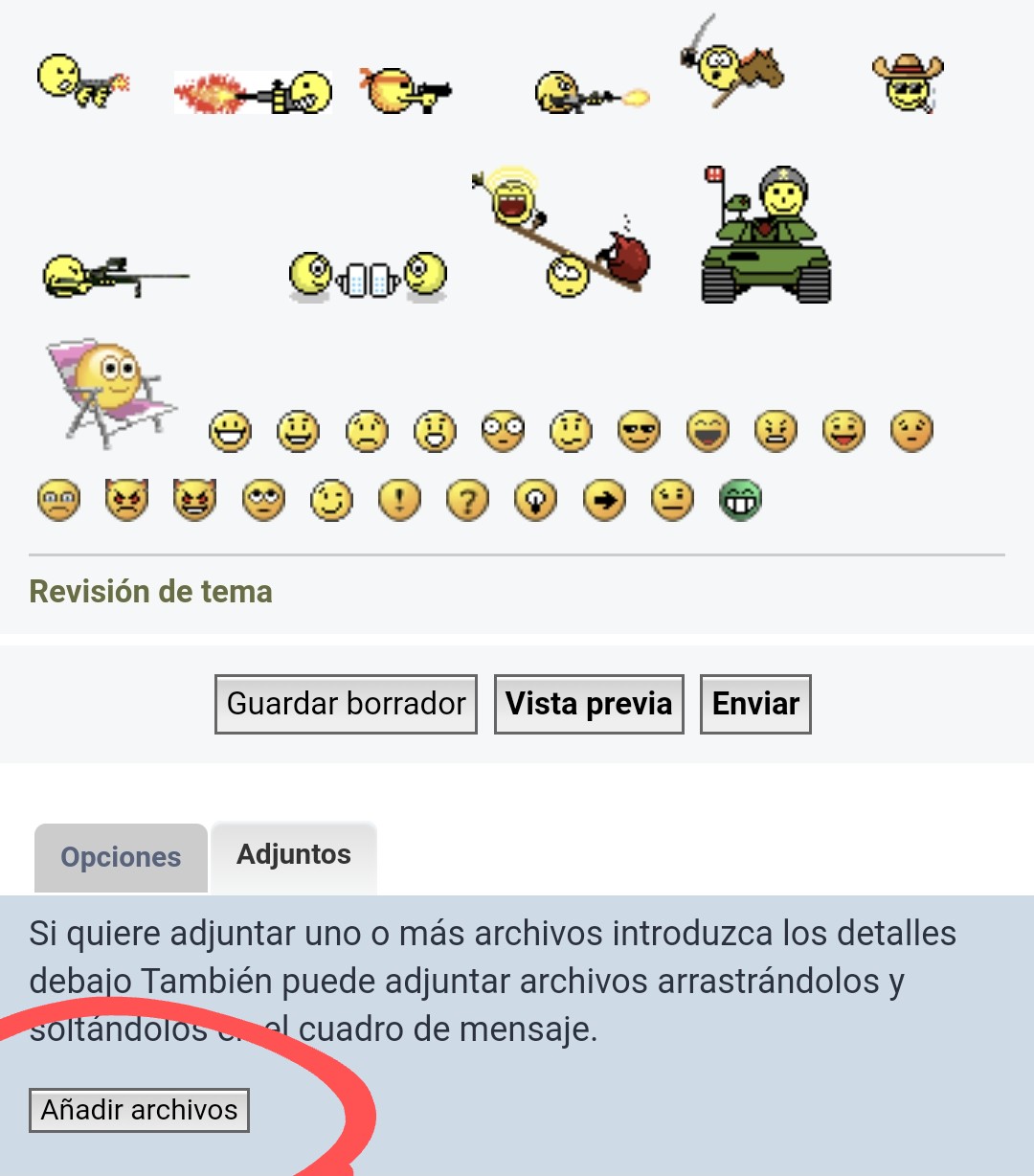 A MI NO ME SALEN LAS PESTAÑAS añadir archivos adjuntar etc no me salen despues de los imoticonos