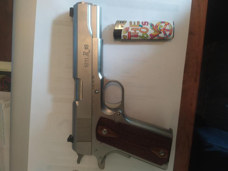 Remington 1911 R1 inox. calibre 45 ACP, 880 €. Solo usada por mi. No tiene ni 500 tiros