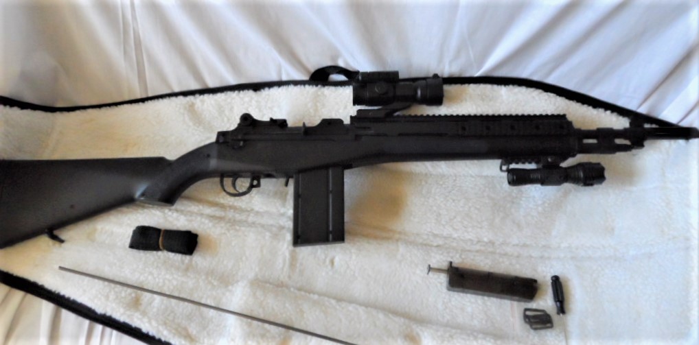 Se vende Fusil M14/EBR SOCOM ASG DiscoveryLine - 6 mm Muelle, con cargador de 40 BBs, alza trasera ajustable, rail para accesorios. Incluye mira y linterna, completamente nueva. Con cargador rápido de balas (Tico Tico) y funda acolchada tipo borreguillo.
