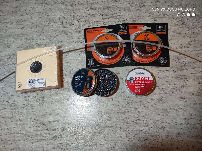 Se vende con todo lo que incluyen las fotos, hay una baqueta de fibra, los balines, las latas cerradas estas sin abrir, la montura es Hanke.