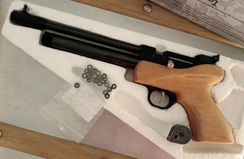 Hola a todos, pues eso que vendo una CP1 de CO2 de Spairguns en 5,5 con algún arreglillo hecho en la empuñadura como puede verse pero con la junta original de los botellines sustituida por juntas toricas que se tienen que ir cambiando mas menudo que la junta original, la doy por 35€ y regalo las juntas toricas que se ven en la foto.