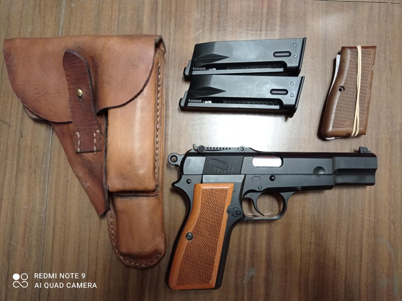 Pistola réplica de la Browning HP35 de la segunda guerra mundial, 2 cargadores, 2 juegos de cachas 01
