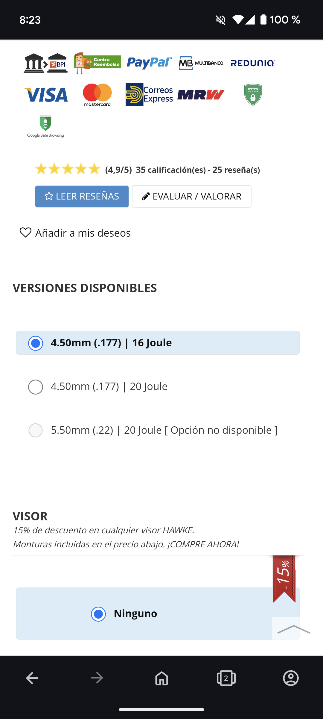 Hola compañero buenas noches, decirte que hace una semana que adquirí una HW97k en 5,5 y 20J en Mundilar con el descuento del 10%.