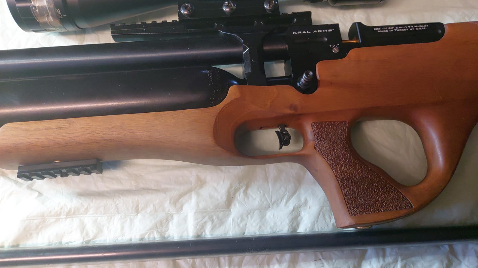Se vende PCP kral Puncher Ekinoks en 4.5 y 5.5 , con cañón enfundado , gatillo ajustable en dureza ,recorrido y posición,con silenciador que la deja muda hasta a potencia fac, con seguro, carrillera ajustable, cantonera ajustable, regulador de potencia externo con varias posiciones, juego de juntas de repuesto , herramientas para cambiar el calibre ,muy fácil y rapido, dos cargadores de cada calibre y dos bandejas monitiro , rail de 20 mm para el montaje de visores, rail de 20 debajo para la colocación de bipode , bipode incluido, maleta rígida marca kral incluida, botella de 3 litros de 300 bares con 2 años de garantía con su grifería, visor 6-24x50 con sus monturas y con retícula iluminada, scopecam para grabar los tiros