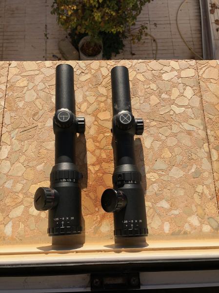 Vendo dos visores tipo Batida 1,25x5x26, marca Visionking , uno con reticula Half mildot y otro de tipo aleman ambos con reticula iluminada , precio 60 Euros cada uno incluido el envio en peninsula mediante paqueteria, incluyo tapas de proteccion. Watsaap 622009827 .