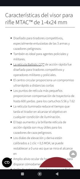 Buenos días, vendo visor táctico Burris MTAC con retícula iluminada ballistic AR . Sin uso. Lo he sacado en 4 monterías. Ideal tanto para tiros cortos por sus pocos aumentos , tanto como para tiros de hasta 250 metros por su reticula balística. Ideal para montería , se puede ver en Toledo. Precio 325 euros, si se recoge en mano se podrá quitar algo de dinero. Portes pagados a península.