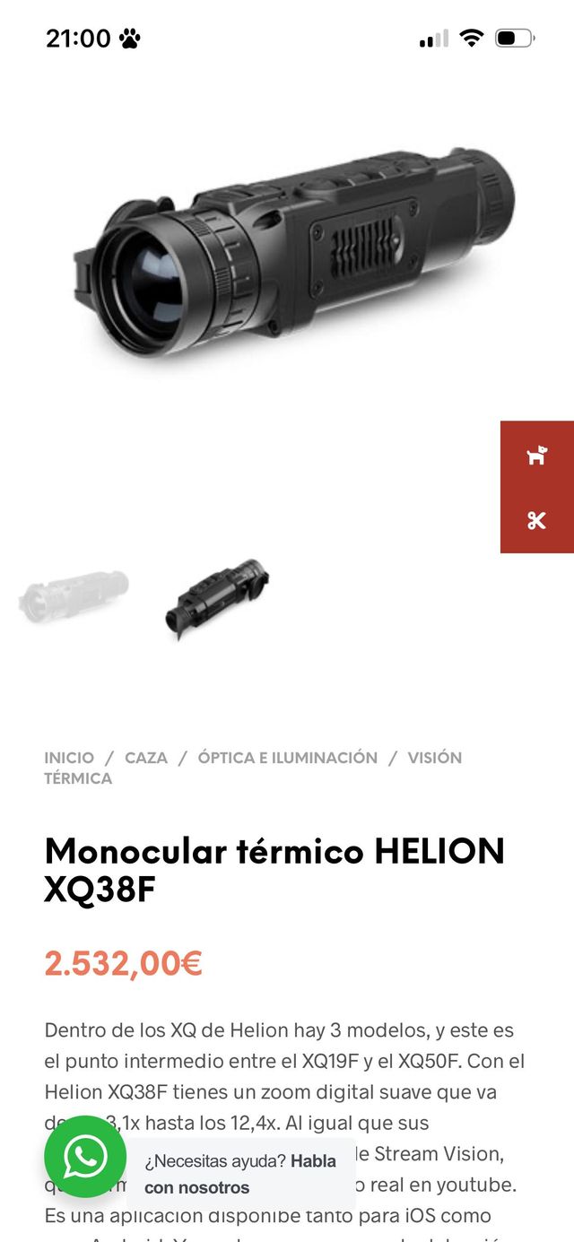 Cámara térmica Pulsar Helion XQ38F (alta gama, excelente calidad)