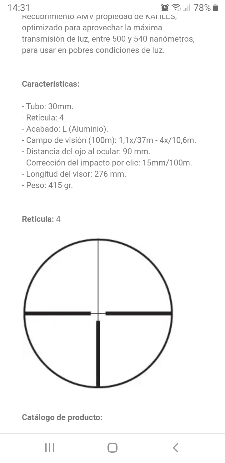 Visor de batida Kahles Helia C 1,1-4x24, está en perfectas condiciones sin roces ni golpes.