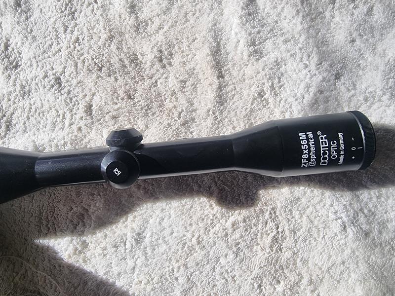 Visor Docter Aphferical 8x56 de raíl, con monturas de Apel , utilizado sólo en esperas durante un año , precio 475 €