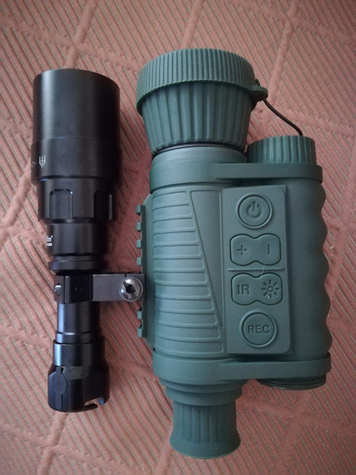 *Linterna Uniquefire T50 de 940nn (invisible) con zoom con montura acoplable al monocular.