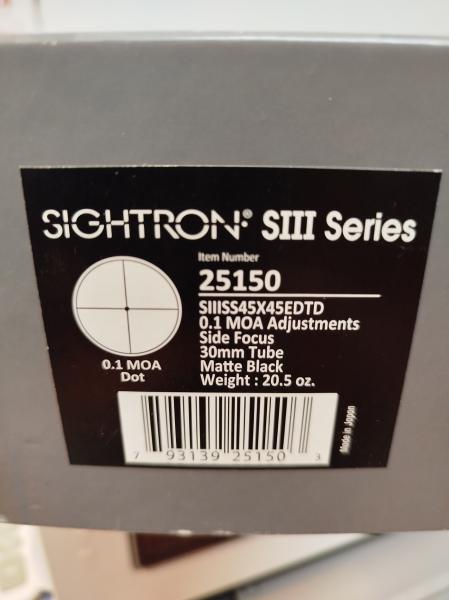 Vendo por jubilación, visor Sightron 45X45 Competitión, comprado este año, estado nuevo, con caja original, parasol.