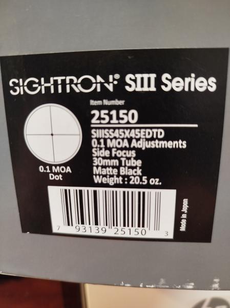 Vendo visor Sightron 45X45 Competition, en prefecto estado comprado hace un año en armeria Parriego. con su caja original, accesorios, factura compra.