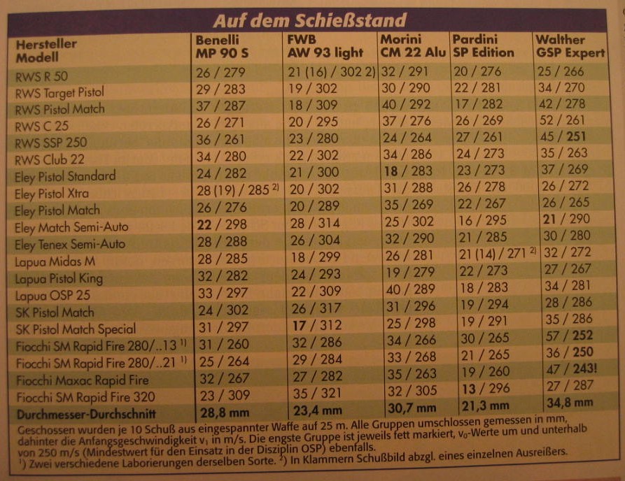Ahí van un par de documentos en los que se ven los resultados de la Pardini SP entre otras.